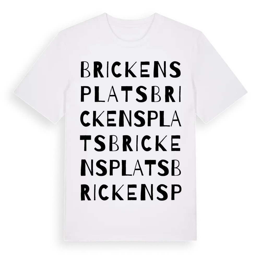 Brickens Plats ordlek t-shirt är inspirerad av Brickens Plats i Västernorrlands län, Sverige. Tröjan är designad för dig som har en speciell koppling till platsen – oavsett om du bor här, har rötterna här eller bara älskar Brickens Plats.