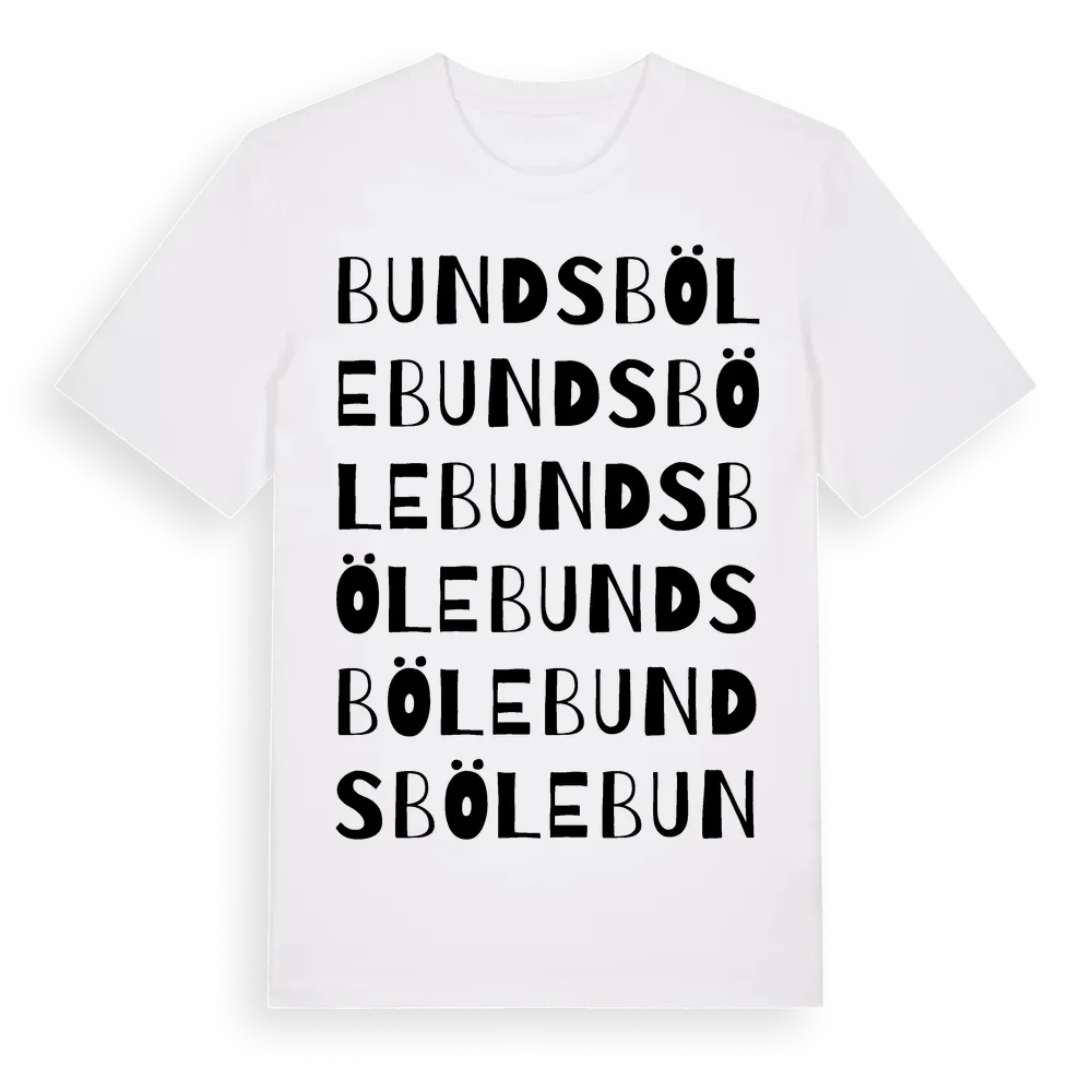 Bundsböle ordlek t-shirt är inspirerad av byn Bundsböle i Västernorrlands län, Sverige. Tröjan är designad för dig som har en speciell koppling till platsen – oavsett om du bor här, har rötterna här eller bara älskar Bundsböle.