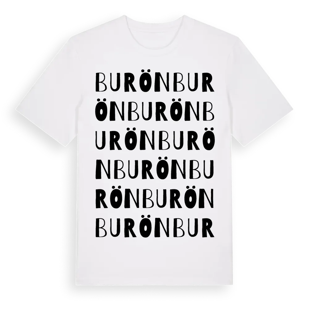 En ordlek byggd på Buröns namn. Subtilt och klurig – ett motiv som bara de som verkligen känner platsen fullt ut förstår. Premium bomull, unisex – från ön Burön i Västernorrlands län.
