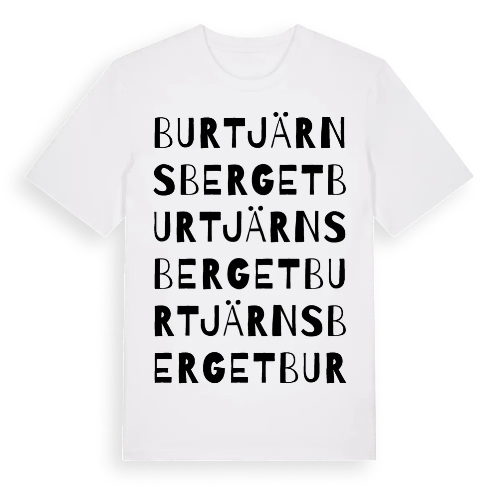 Burtjärnsberget ordlek t-shirt är inspirerad av Burtjärnsberget i Västernorrlands län, Sverige. Tröjan är designad för dig som har en speciell koppling till platsen – oavsett om du bor här, har rötterna här eller bara älskar Burtjärnsberget.