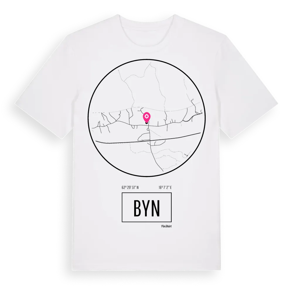 Byn t-shirt är inspirerad av stadsdelen Byn i Västernorrlands län, Sverige. Tröjan är designad för dig som har en speciell koppling till platsen – oavsett om du bor här, har rötterna här eller bara älskar Byn.