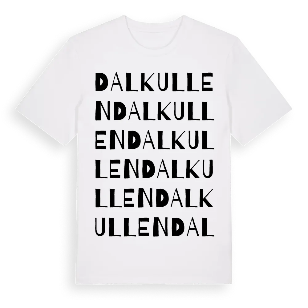 Dalkullen ordlek t-shirt är inspirerad av Dalkullen i Västernorrlands län, Sverige. Tröjan är designad för dig som har en speciell koppling till platsen – oavsett om du bor här, har rötterna här eller bara älskar Dalkullen.