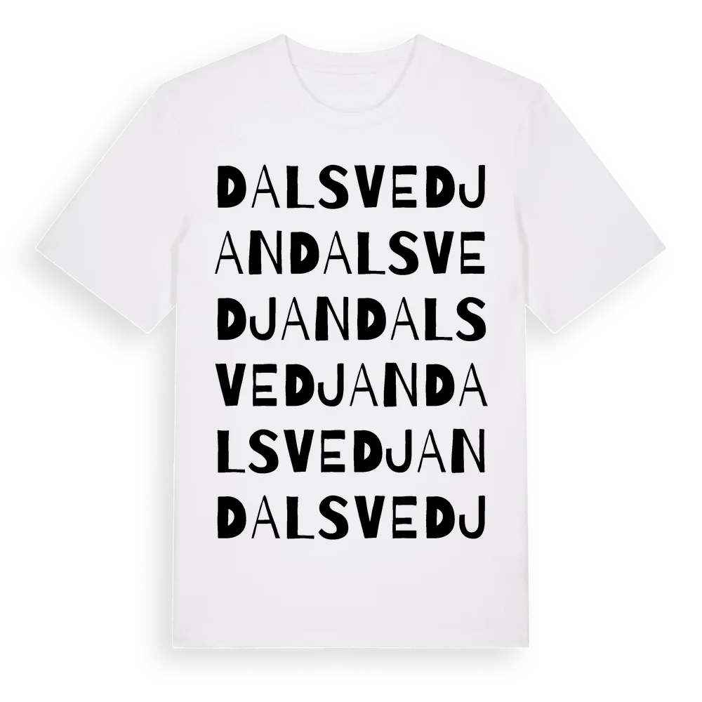 Dalsvedjan ordlek t-shirt är inspirerad av Dalsvedjan i Västernorrlands län, Sverige. Tröjan är designad för dig som har en speciell koppling till platsen – oavsett om du bor här, har rötterna här eller bara älskar Dalsvedjan.