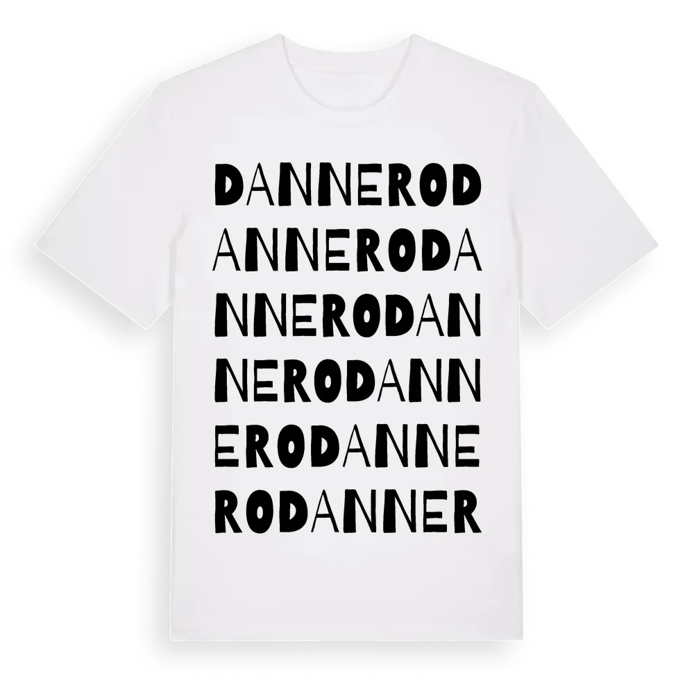 Dannero ordlek t-shirt är inspirerad av byn Dannero i Västernorrlands län, Sverige. Tröjan är designad för dig som har en speciell koppling till platsen – oavsett om du bor här, har rötterna här eller bara älskar Dannero.