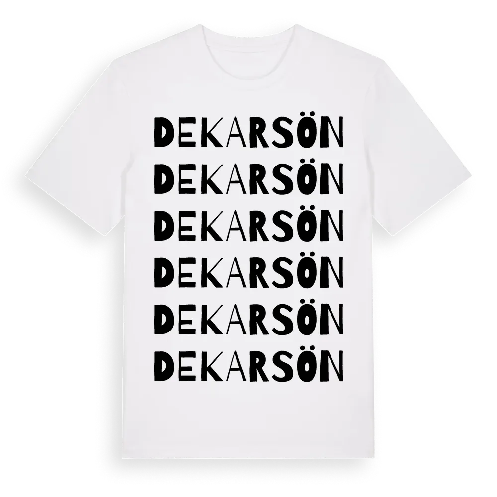 Dekarsön ordlek t-shirt är inspirerad av ön Dekarsön i Västernorrlands län, Sverige. Tröjan är designad för dig som har en speciell koppling till platsen – oavsett om du bor här, har rötterna här eller bara älskar Dekarsön.