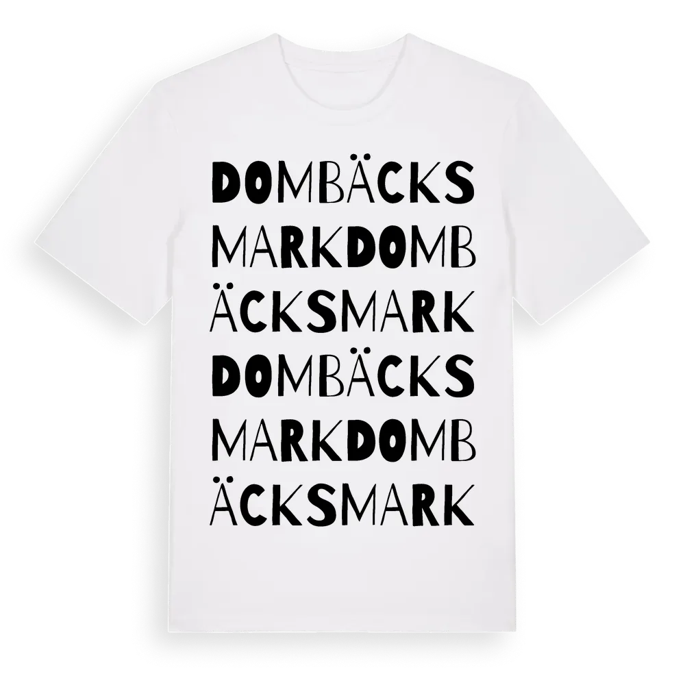 Dombäcksmark ordlek t-shirt är inspirerad av byn Dombäcksmark i Västernorrlands län, Sverige. Tröjan är designad för dig som har en speciell koppling till platsen – oavsett om du bor här, har rötterna här eller bara älskar Dombäcksmark.