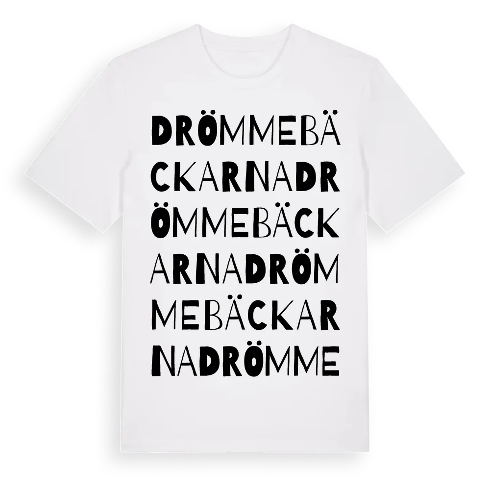 Drömmebäckarna ordlek t-shirt är inspirerad av byn Drömmebäckarna i Västernorrlands län, Sverige. Tröjan är designad för dig som har en speciell koppling till platsen – oavsett om du bor här, har rötterna här eller bara älskar Drömmebäckarna.