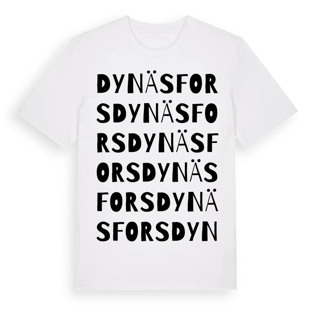 Dynäsfors ordlek t-shirt är inspirerad av Dynäsfors i Västernorrlands län, Sverige. Tröjan är designad för dig som har en speciell koppling till platsen – oavsett om du bor här, har rötterna här eller bara älskar Dynäsfors.