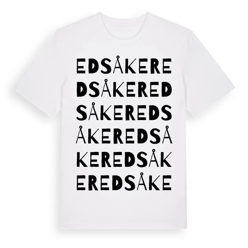 Edsåker ordlek t-shirt är inspirerad av byn Edsåker i Västernorrlands län, Sverige. Tröjan är designad för dig som har en speciell koppling till platsen – oavsett om du bor här, har rötterna här eller bara älskar Edsåker.