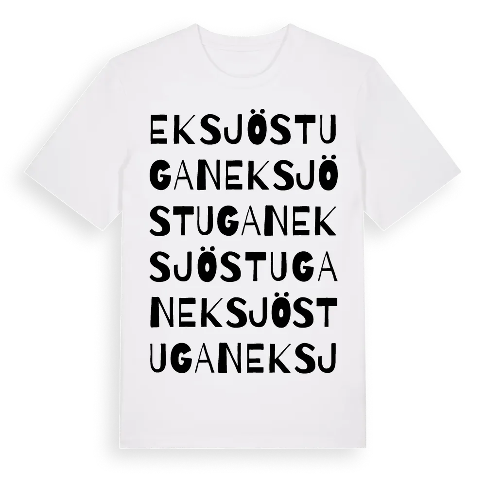 Eksjöstugan ordlek t-shirt är inspirerad av Eksjöstugan i Västernorrlands län, Sverige. Tröjan är designad för dig som har en speciell koppling till platsen – oavsett om du bor här, har rötterna här eller bara älskar Eksjöstugan.