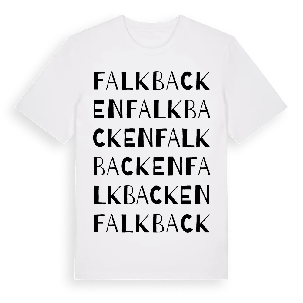 En ordlek byggd på Falkbackens namn. Subtilt och klurig – ett motiv som bara de som verkligen känner platsen fullt ut förstår. Premium bomull, unisex – från byn Falkbacken i Västernorrlands län.
