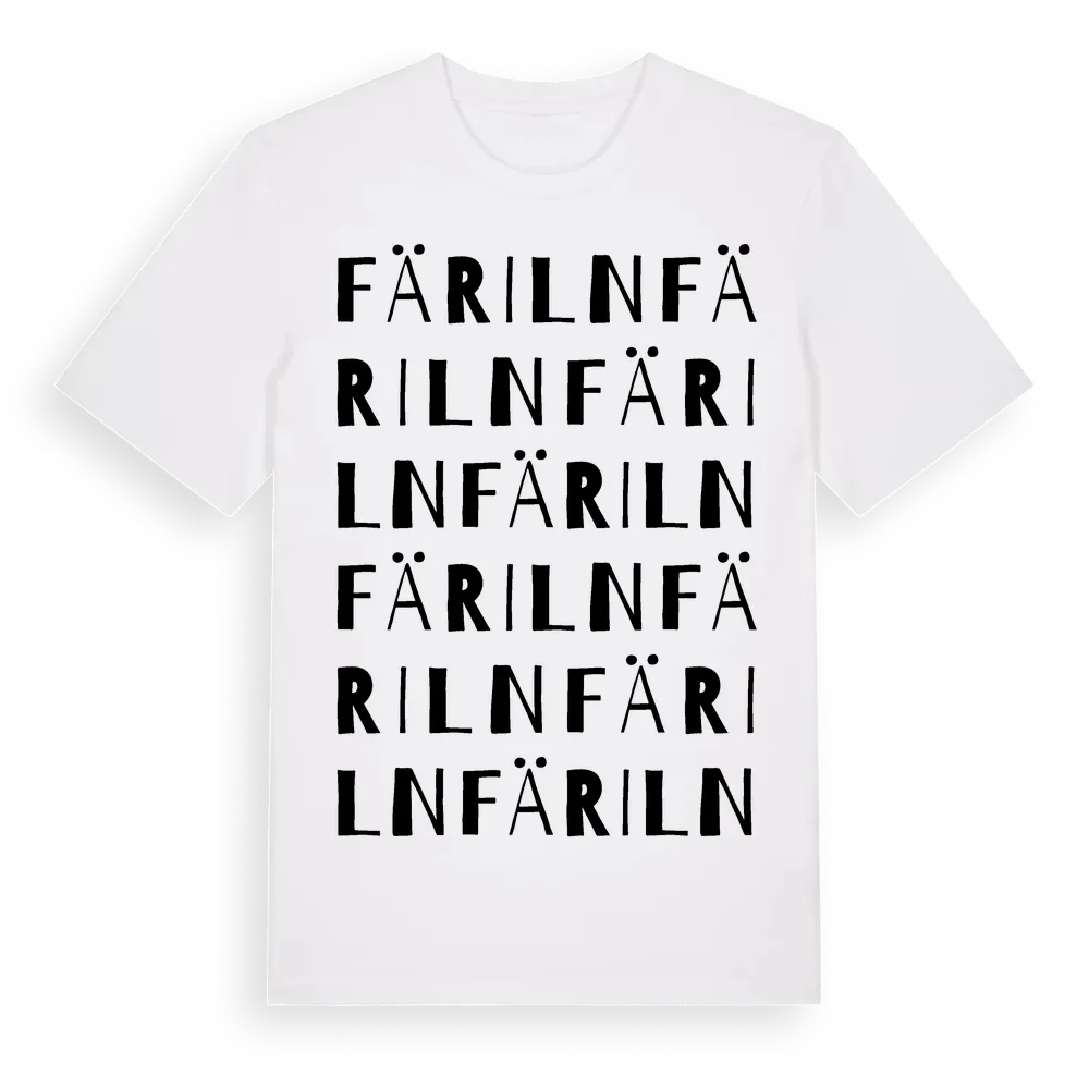 Färiln ordlek t-shirt är inspirerad av Färiln i Västernorrlands län, Sverige. Tröjan är designad för dig som har en speciell koppling till platsen – oavsett om du bor här, har rötterna här eller bara älskar Färiln.