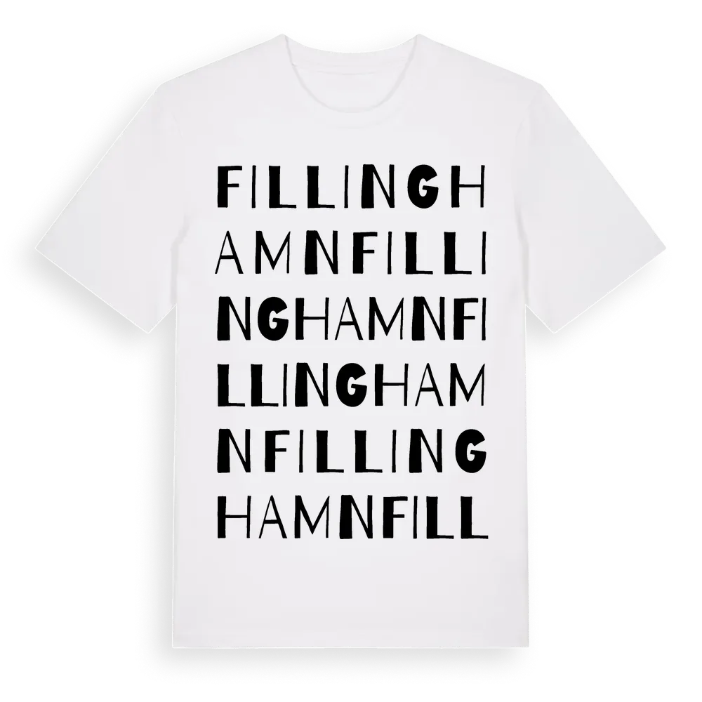 Fillinghamn ordlek t-shirt är inspirerad av byn Fillinghamn i Västernorrlands län, Sverige. Tröjan är designad för dig som har en speciell koppling till platsen – oavsett om du bor här, har rötterna här eller bara älskar Fillinghamn.
