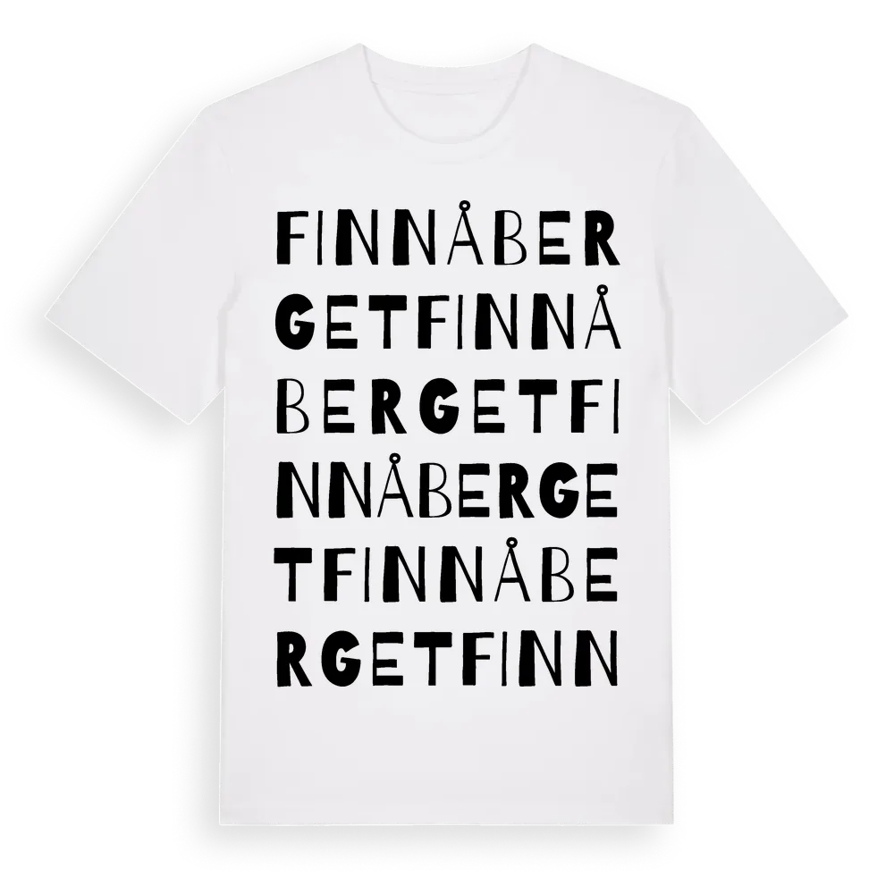 Finnåberget ordlek t-shirt är inspirerad av byn Finnåberget i Västernorrlands län, Sverige. Tröjan är designad för dig som har en speciell koppling till platsen – oavsett om du bor här, har rötterna här eller bara älskar Finnåberget.