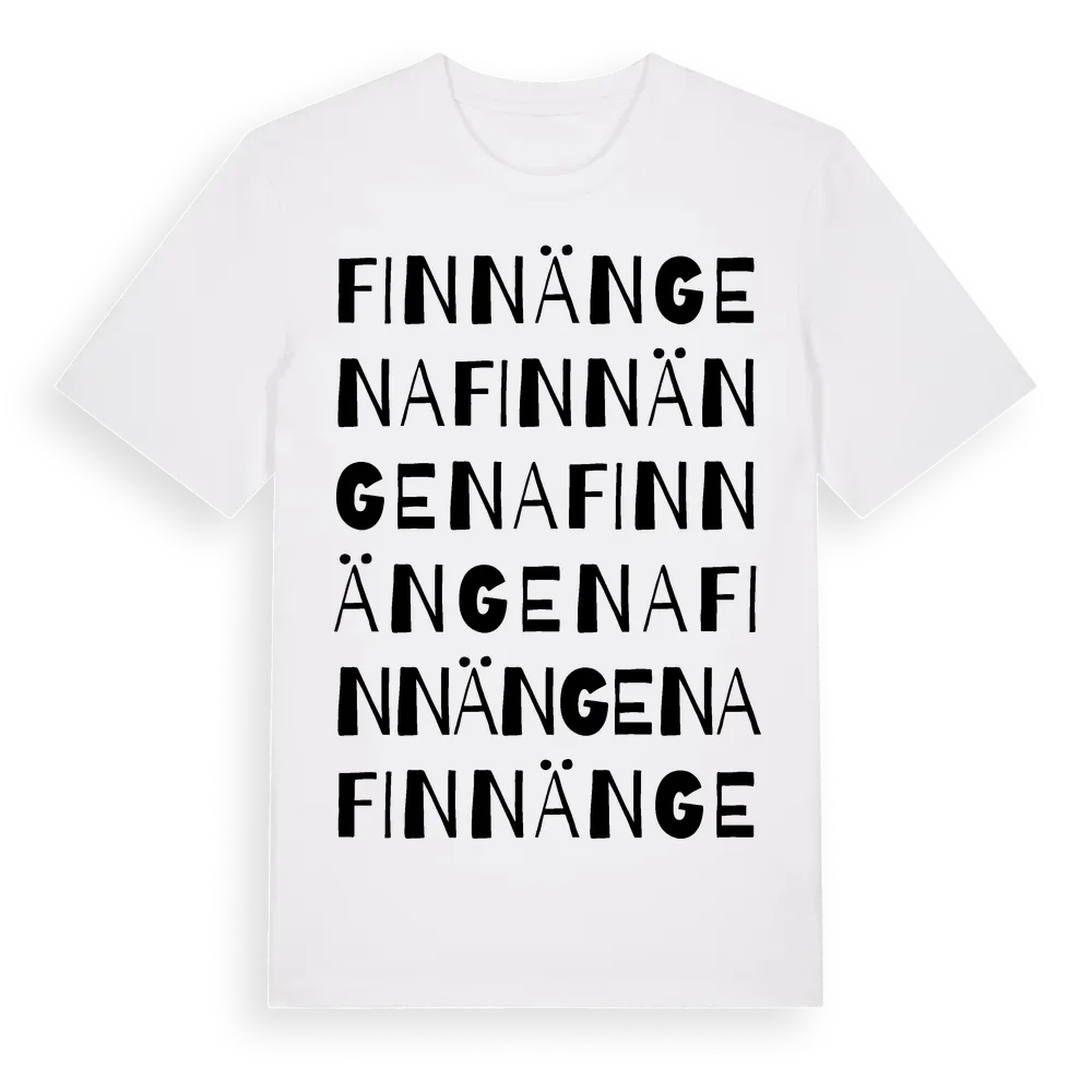 Finnängena ordlek t-shirt är inspirerad av Finnängena i Västernorrlands län, Sverige. Tröjan är designad för dig som har en speciell koppling till platsen – oavsett om du bor här, har rötterna här eller bara älskar Finnängena.