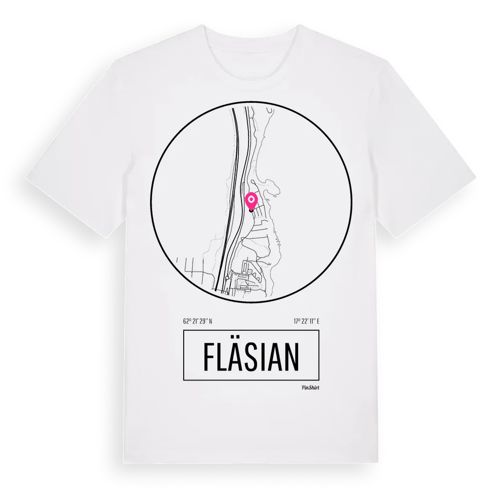 Fläsian t-shirt är inspirerad av stadsdelen Fläsian i Västernorrlands län, Sverige. Tröjan är designad för dig som har en speciell koppling till platsen – oavsett om du bor här, har rötterna här eller bara älskar Fläsian.