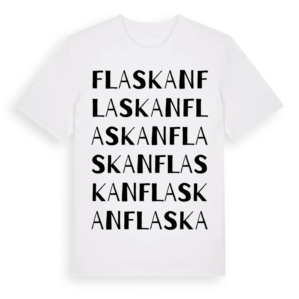 Flaskan ordlek t-shirt är inspirerad av Flaskan i Västernorrlands län, Sverige. Tröjan är designad för dig som har en speciell koppling till platsen – oavsett om du bor här, har rötterna här eller bara älskar Flaskan.