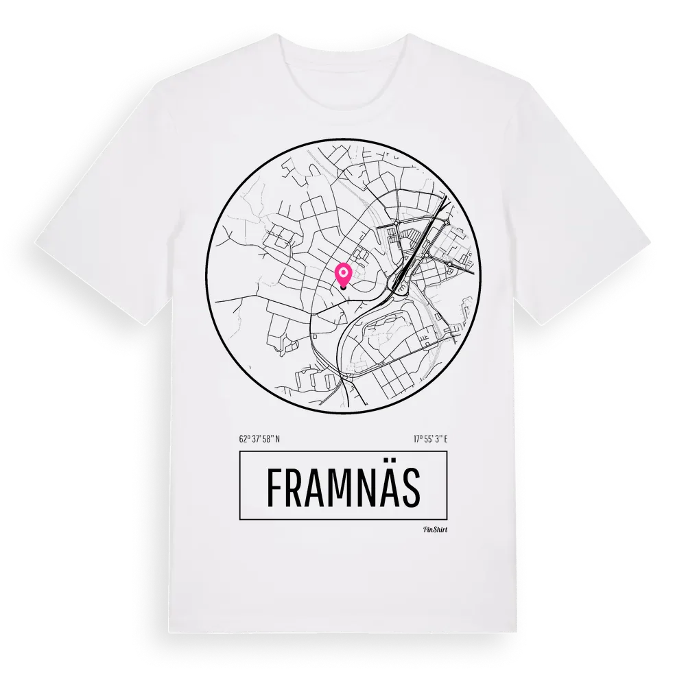 Framnäs t-shirt är inspirerad av stadsdelen Framnäs i Västernorrlands län, Sverige. Tröjan är designad för dig som har en speciell koppling till platsen – oavsett om du bor här, har rötterna här eller bara älskar Framnäs.