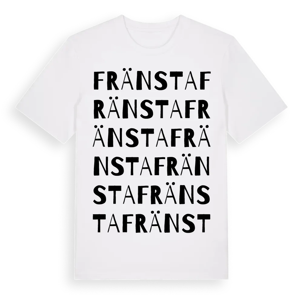 En ordlek byggd på Fränstas namn. Subtilt och klurig – ett motiv som bara de som verkligen känner platsen fullt ut förstår. Premium bomull, unisex – från byn Fränsta i Västernorrlands län.