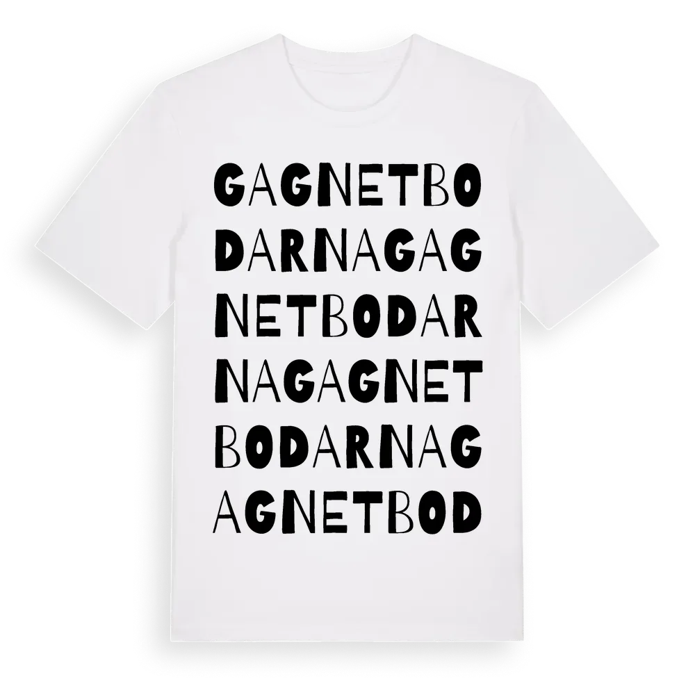 Gagnetbodarna ordlek t-shirt är inspirerad av Gagnetbodarna i Västernorrlands län, Sverige. Tröjan är designad för dig som har en speciell koppling till platsen – oavsett om du bor här, har rötterna här eller bara älskar Gagnetbodarna.