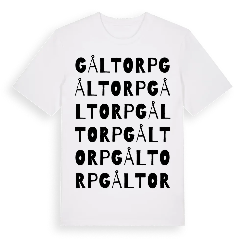 Gåltorp ordlek t-shirt är inspirerad av byn Gåltorp i Västernorrlands län, Sverige. Tröjan är designad för dig som har en speciell koppling till platsen – oavsett om du bor här, har rötterna här eller bara älskar Gåltorp.