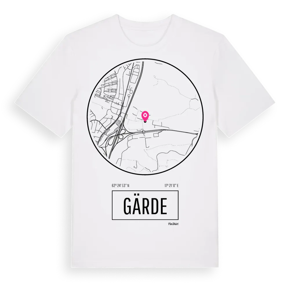 Gärde t-shirt är inspirerad av stadsdelen Gärde i Västernorrlands län, Sverige. Tröjan är designad för dig som har en speciell koppling till platsen – oavsett om du bor här, har rötterna här eller bara älskar Gärde.