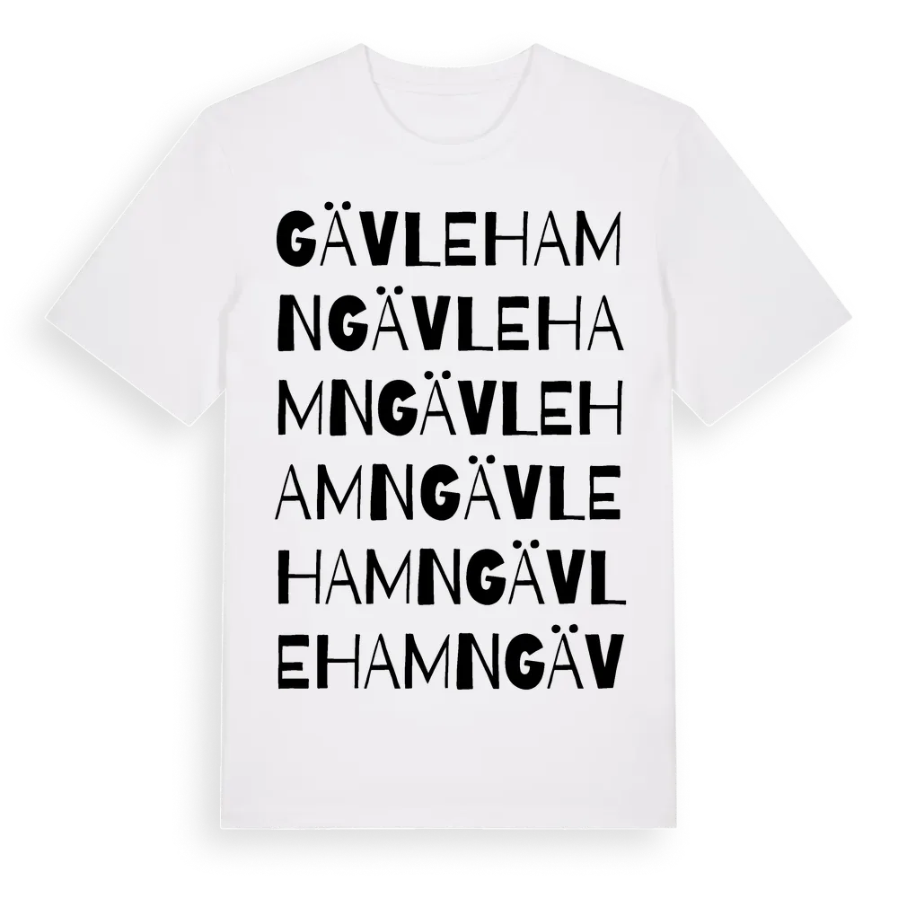 Gävlehamn ordlek t-shirt är inspirerad av Gävlehamn i Västernorrlands län, Sverige. Tröjan är designad för dig som har en speciell koppling till platsen – oavsett om du bor här, har rötterna här eller bara älskar Gävlehamn.