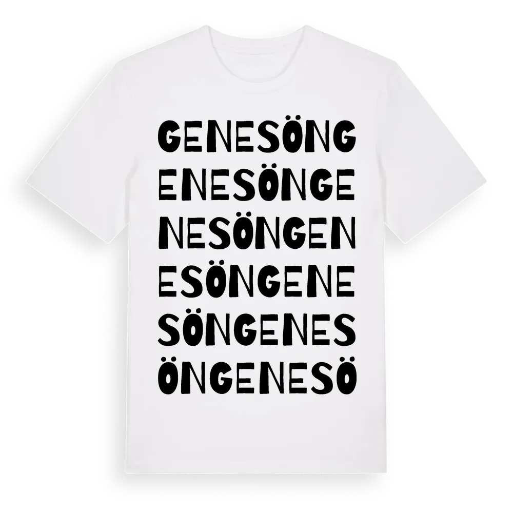 Genesön ordlek t-shirt är inspirerad av byn Genesön i Västernorrlands län, Sverige. Tröjan är designad för dig som har en speciell koppling till platsen – oavsett om du bor här, har rötterna här eller bara älskar Genesön.