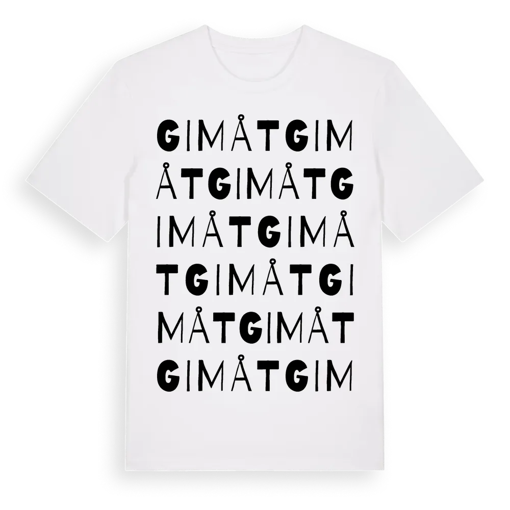 Gimåt ordlek t-shirt är inspirerad av stadsdelen Gimåt i Västernorrlands län, Sverige. Tröjan är designad för dig som har en speciell koppling till platsen – oavsett om du bor här, har rötterna här eller bara älskar Gimåt.