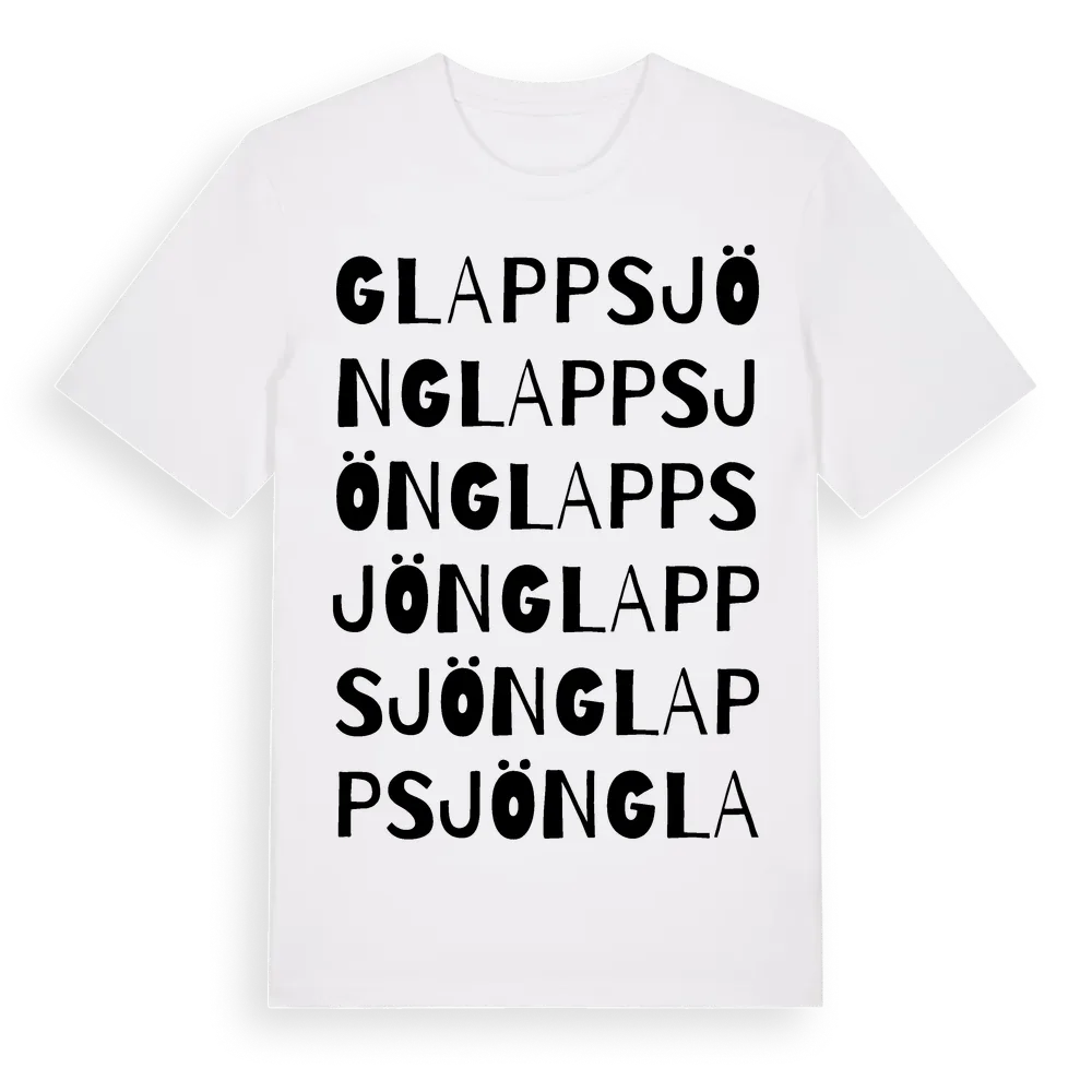 Glappsjön ordlek t-shirt är inspirerad av byn Glappsjön i Västernorrlands län, Sverige. Tröjan är designad för dig som har en speciell koppling till platsen – oavsett om du bor här, har rötterna här eller bara älskar Glappsjön.