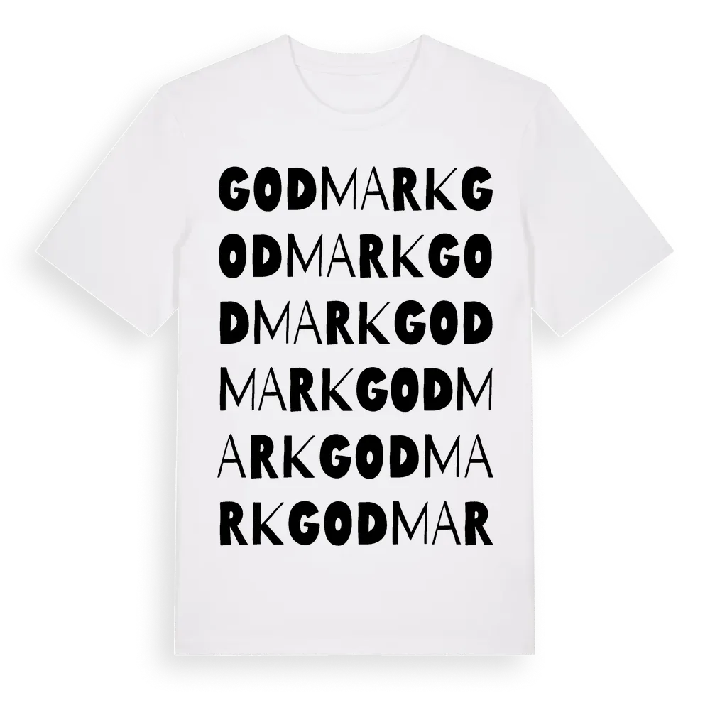 Godmark ordlek t-shirt är inspirerad av byn Godmark i Västernorrlands län, Sverige. Tröjan är designad för dig som har en speciell koppling till platsen – oavsett om du bor här, har rötterna här eller bara älskar Godmark.