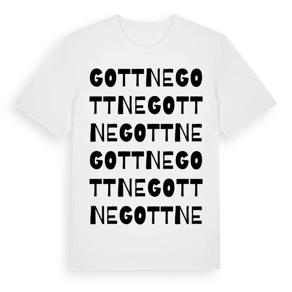 En ordlek byggd på Gottnes namn. Subtilt och klurig – ett motiv som bara de som verkligen känner platsen fullt ut förstår. Premium bomull, unisex – från byn Gottne i Västernorrlands län.