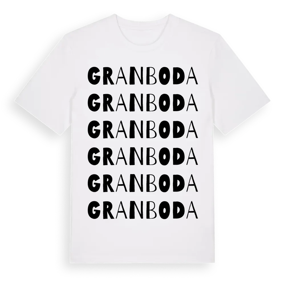 Granboda ordlek t-shirt är inspirerad av byn Granboda i Västernorrlands län, Sverige. Tröjan är designad för dig som har en speciell koppling till platsen – oavsett om du bor här, har rötterna här eller bara älskar Granboda.