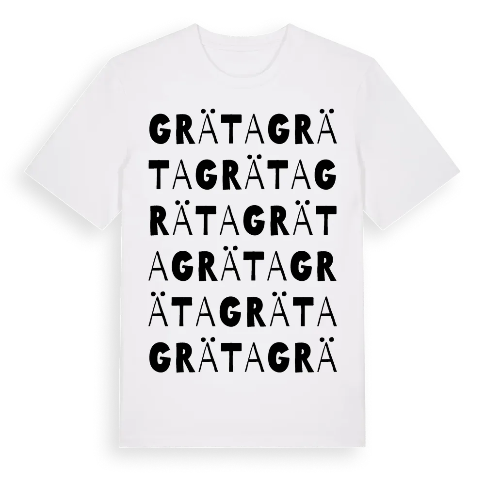 En ordlek byggd på Grätas namn. Subtilt och klurig – ett motiv som bara de som verkligen känner platsen fullt ut förstår. Premium bomull, unisex – från byn Gräta i Västernorrlands län.
