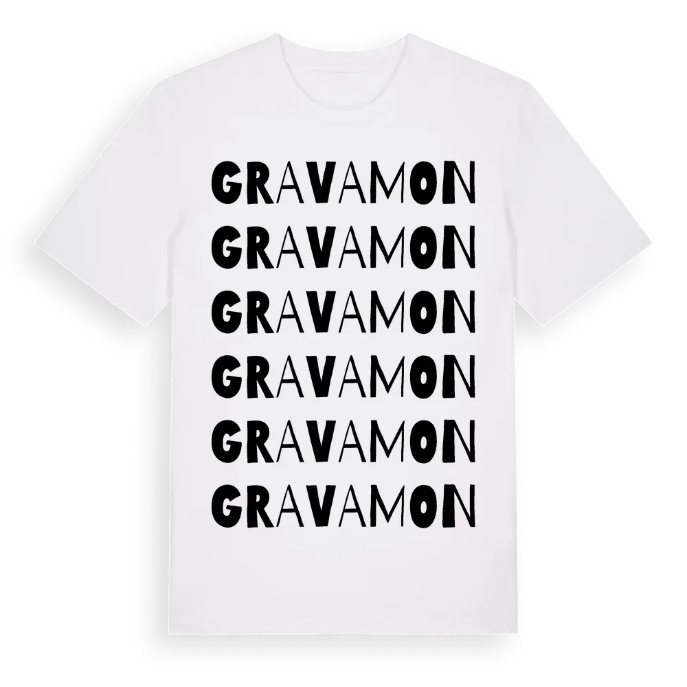 Gravamon ordlek t-shirt är inspirerad av Gravamon i Västernorrlands län, Sverige. Tröjan är designad för dig som har en speciell koppling till platsen – oavsett om du bor här, har rötterna här eller bara älskar Gravamon.