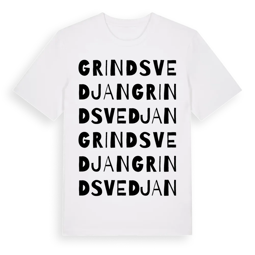 Grindsvedjan ordlek t-shirt är inspirerad av byn Grindsvedjan i Västernorrlands län, Sverige. Tröjan är designad för dig som har en speciell koppling till platsen – oavsett om du bor här, har rötterna här eller bara älskar Grindsvedjan.