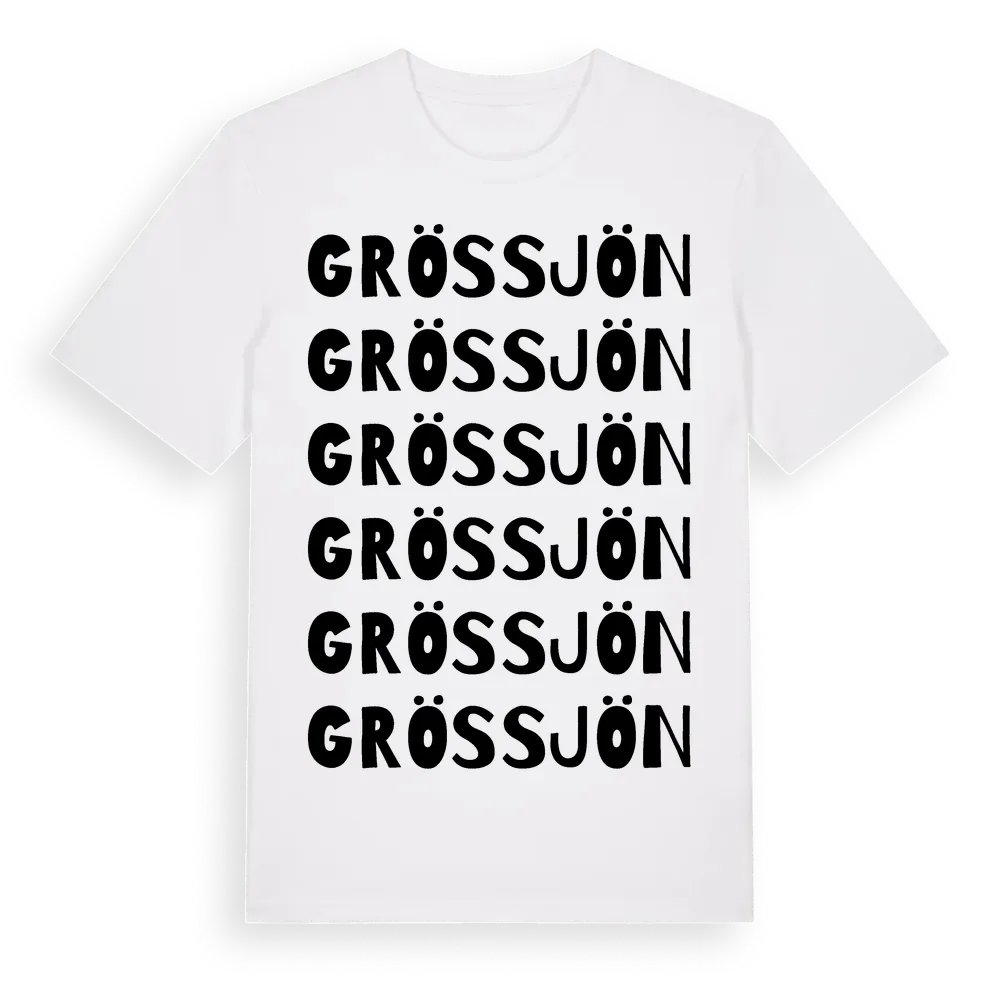 Grössjön ordlek t-shirt är inspirerad av byn Grössjön i Västernorrlands län, Sverige. Tröjan är designad för dig som har en speciell koppling till platsen – oavsett om du bor här, har rötterna här eller bara älskar Grössjön.