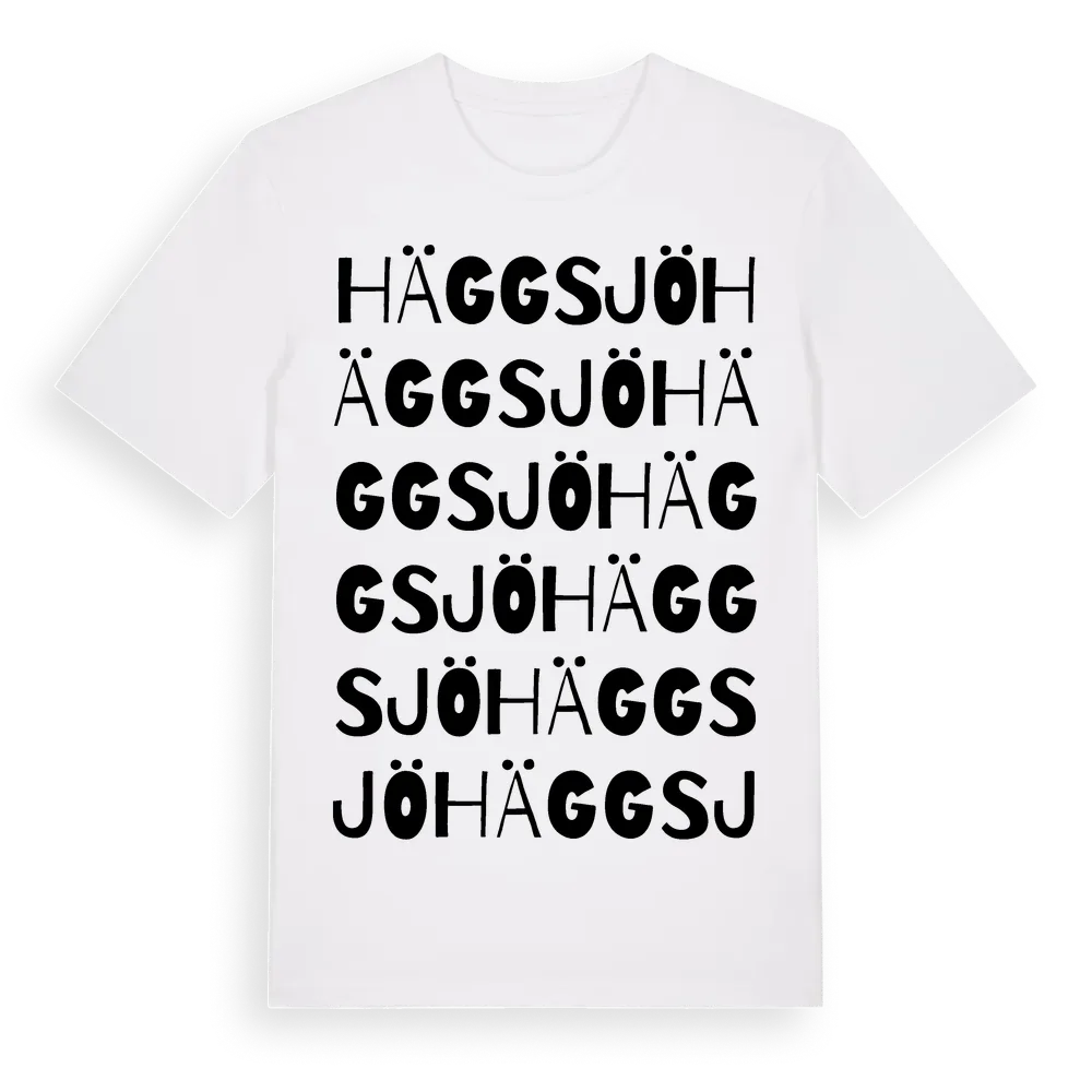 Häggsjö ordlek t-shirt är inspirerad av byn Häggsjö i Västernorrlands län, Sverige. Tröjan är designad för dig som har en speciell koppling till platsen – oavsett om du bor här, har rötterna här eller bara älskar Häggsjö.