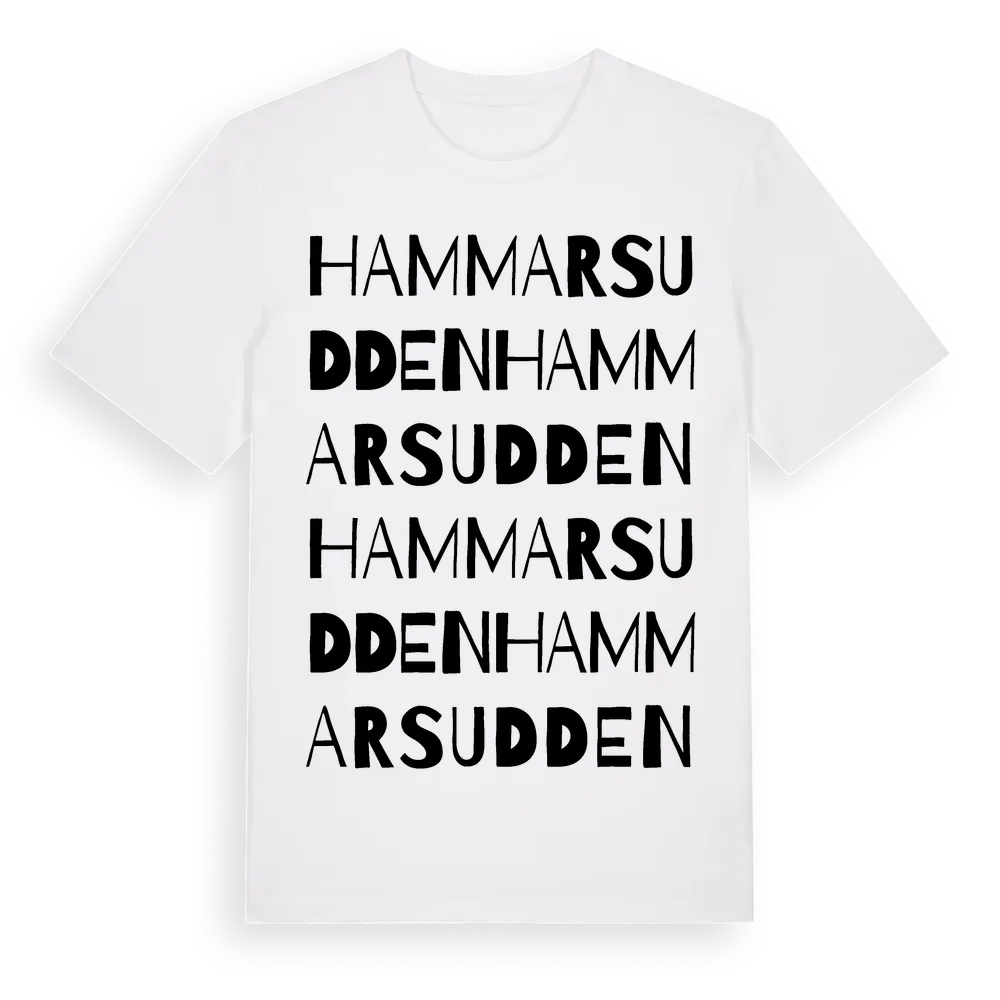 Hammarsudden ordlek t-shirt är inspirerad av Hammarsudden i Västernorrlands län, Sverige. Tröjan är designad för dig som har en speciell koppling till platsen – oavsett om du bor här, har rötterna här eller bara älskar Hammarsudden.