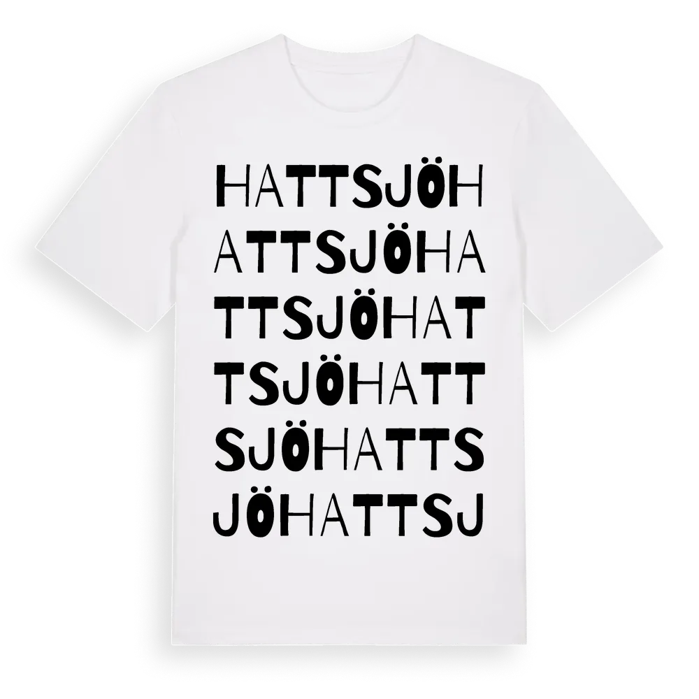 Hattsjö ordlek t-shirt är inspirerad av byn Hattsjö i Västernorrlands län, Sverige. Tröjan är designad för dig som har en speciell koppling till platsen – oavsett om du bor här, har rötterna här eller bara älskar Hattsjö.