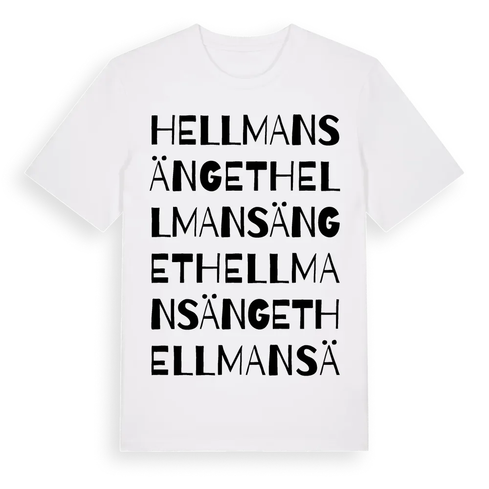 Hellmansänget ordlek t-shirt är inspirerad av Hellmansänget i Västernorrlands län, Sverige. Tröjan är designad för dig som har en speciell koppling till platsen – oavsett om du bor här, har rötterna här eller bara älskar Hellmansänget.