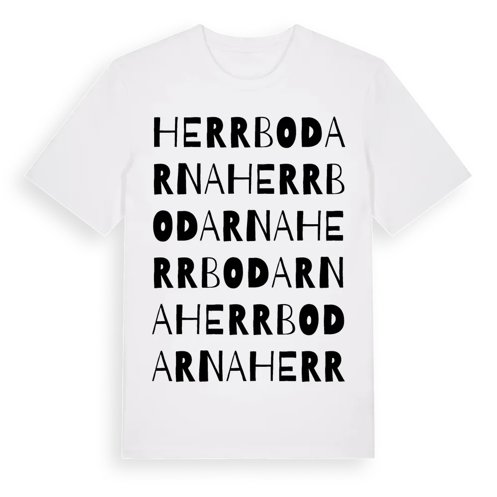 Herrbodarna ordlek t-shirt är inspirerad av Herrbodarna i Västernorrlands län, Sverige. Tröjan är designad för dig som har en speciell koppling till platsen – oavsett om du bor här, har rötterna här eller bara älskar Herrbodarna.