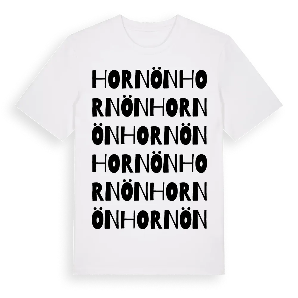En ordlek byggd på Hornöns namn. Subtilt och klurig – ett motiv som bara de som verkligen känner platsen fullt ut förstår. Premium bomull, unisex – från byn Hornön i Västernorrlands län.