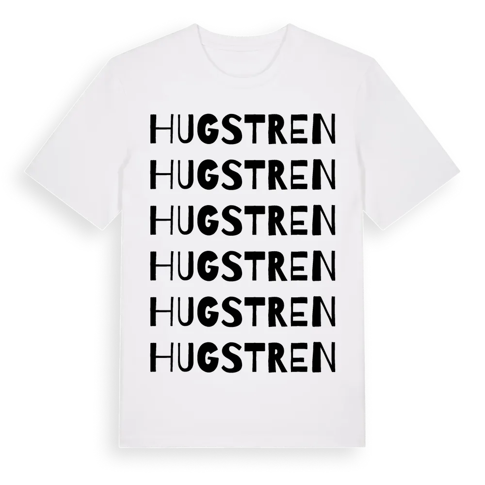 En ordlek byggd på Hugstrens namn. Subtilt och klurig – ett motiv som bara de som verkligen känner platsen fullt ut förstår. Premium bomull, unisex – från byn Hugstren i Västernorrlands län.
