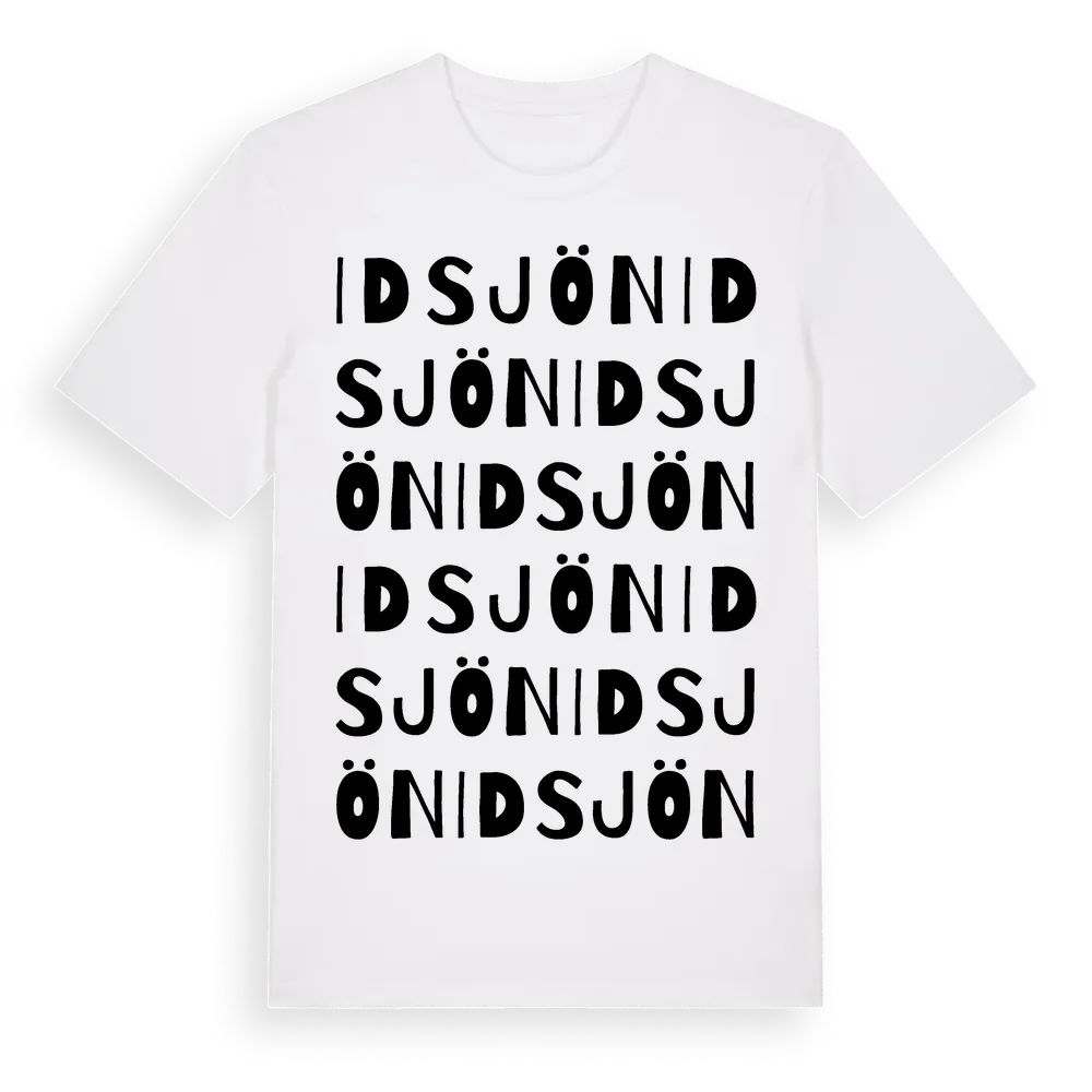 Idsjön ordlek t-shirt är inspirerad av byn Idsjön i Västernorrlands län, Sverige. Tröjan är designad för dig som har en speciell koppling till platsen – oavsett om du bor här, har rötterna här eller bara älskar Idsjön.