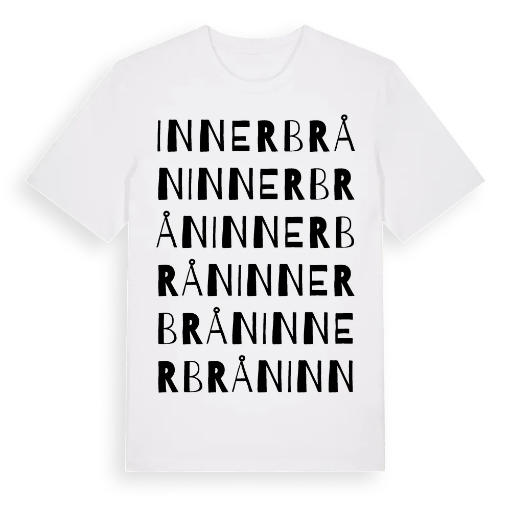 Innerbrån ordlek t-shirt är inspirerad av byn Innerbrån i Västernorrlands län, Sverige. Tröjan är designad för dig som har en speciell koppling till platsen – oavsett om du bor här, har rötterna här eller bara älskar Innerbrån.