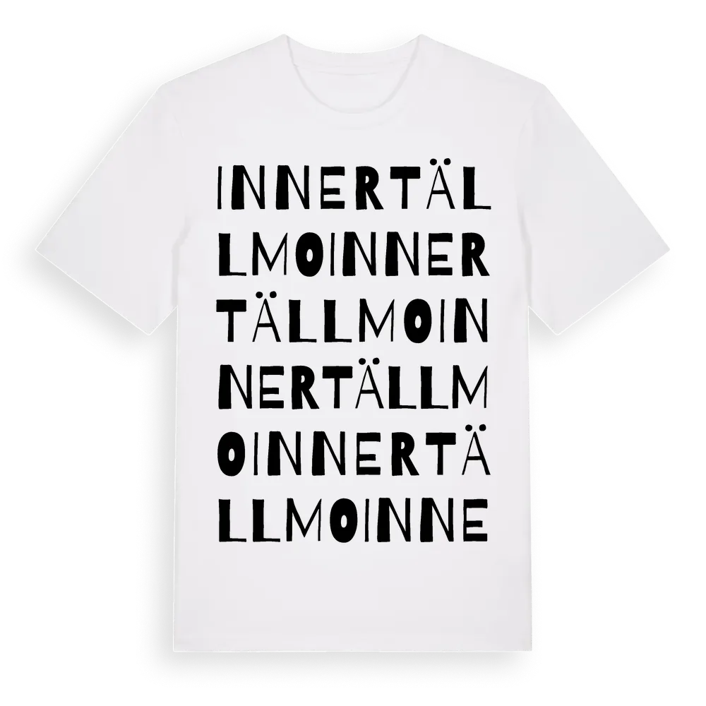 En ordlek byggd på Innertällmos namn. Subtilt och klurig – ett motiv som bara de som verkligen känner platsen fullt ut förstår. Premium bomull, unisex – från byn Innertällmo i Västernorrlands län.