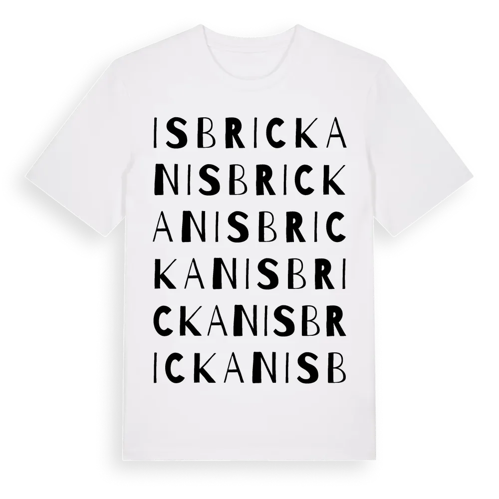 En ordlek byggd på Isbrickans namn. Subtilt och klurig – ett motiv som bara de som verkligen känner platsen fullt ut förstår. Premium bomull, unisex – från byn Isbrickan i Västernorrlands län.