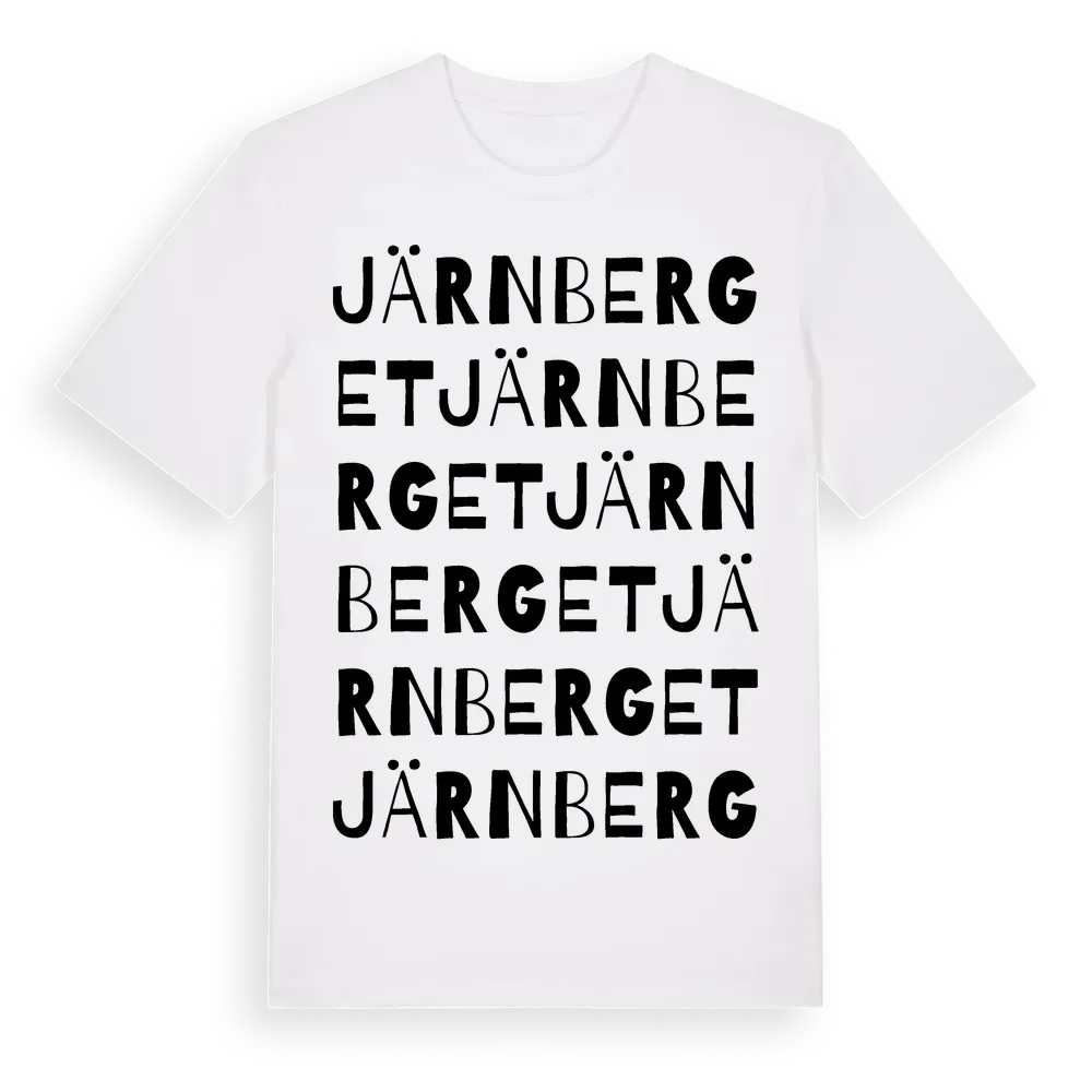 Järnberget ordlek t-shirt är inspirerad av Järnberget i Västernorrlands län, Sverige. Tröjan är designad för dig som har en speciell koppling till platsen – oavsett om du bor här, har rötterna här eller bara älskar Järnberget.
