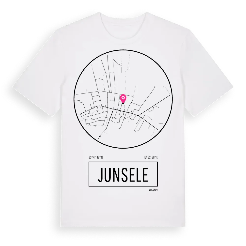 Junsele t-shirt är inspirerad av byn Junsele i Västernorrlands län, Sverige. Tröjan är designad för dig som har en speciell koppling till platsen – oavsett om du bor här, har rötterna här eller bara älskar Junsele.